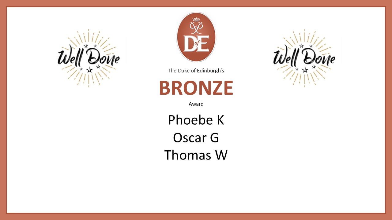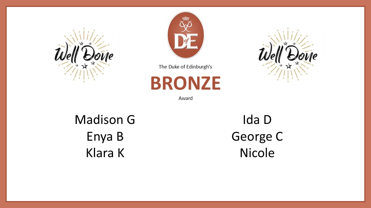 Congratulations to the following Year 10 and 11 students for achieving their Duke of Edinburgh Bronze Award.