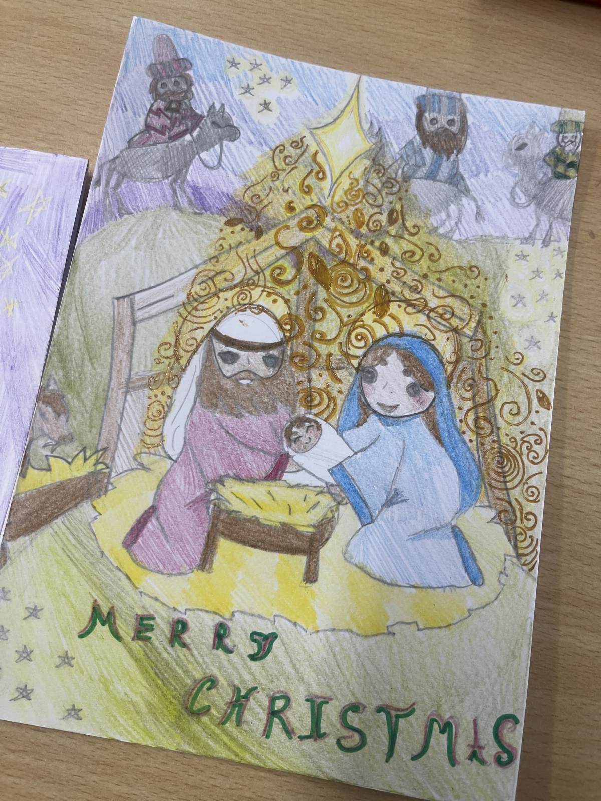 The RE Department hosted a Christmas Card competition this year, inviting KS3 students to design cards based on the theme of Luke 2:8-15. Miss Delahunty and Miss Mendoza selected individual winners from each class and have submitted their entries to the Diocese competition, hoping for some exciting winning announcements in the New Year. Well done to all KS3 students – the cards they created were fabulous.