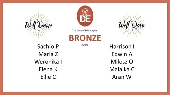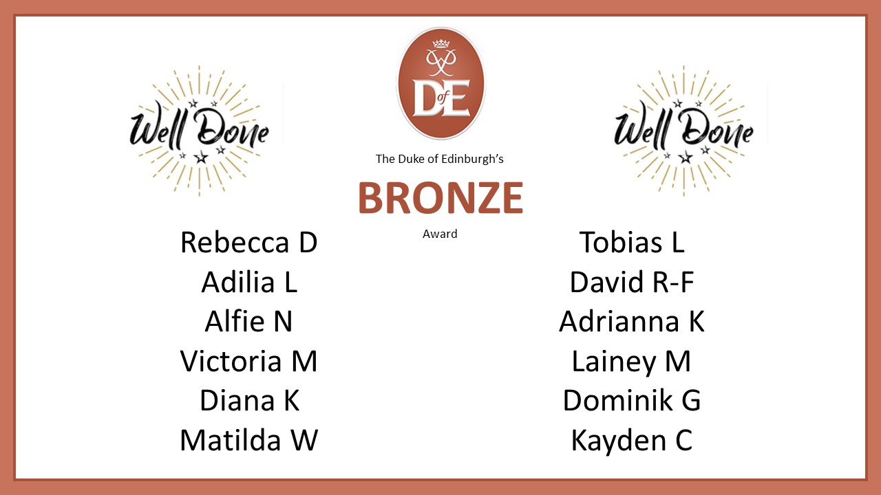 Congratulations to the following Year 10 and 11 students for achieving their Duke of Edinburgh Bronze Award.